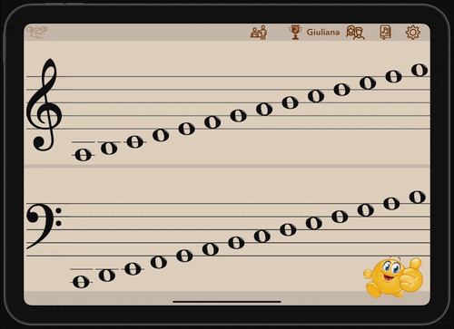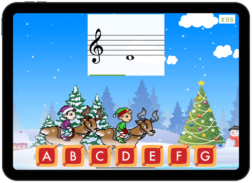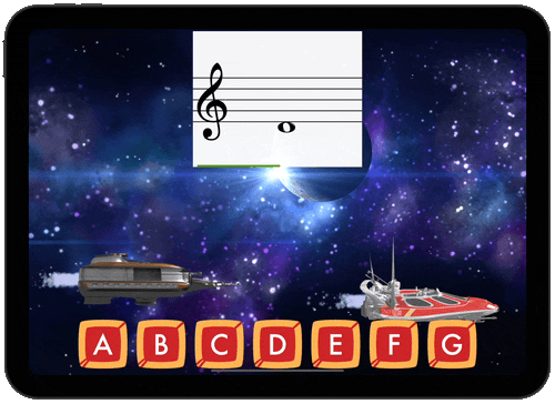 In addition to responding by tapping on letter buttons, students have the option of playing the note on their instrument. Works with transposing instruments too!