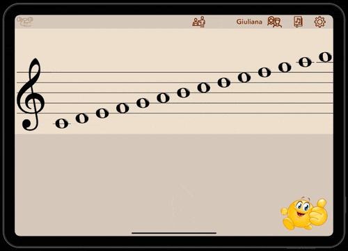 Flashnote Derby can’t show the entire range of notes that are available to practice on the screen at one time. But you do have the option of accessing notes with up to five ledger lines, above and below the staff.
