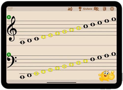 Whenever notes have been selected for a particular clef, a badge appears on the clef showing the total number of notes selected in that staff.