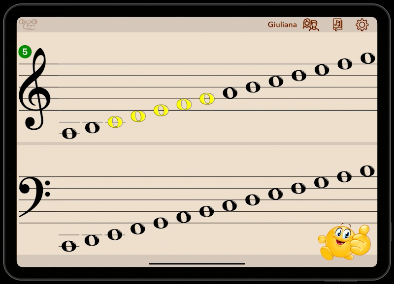 You can view the Flashnote Derby activity for any user you have created on your device. You can see a graph displaying the percentage of correct answers they have given as well as the total number of minutes they have practiced. You can also get a detailed view of which notes they mastered and which they are still struggling with.